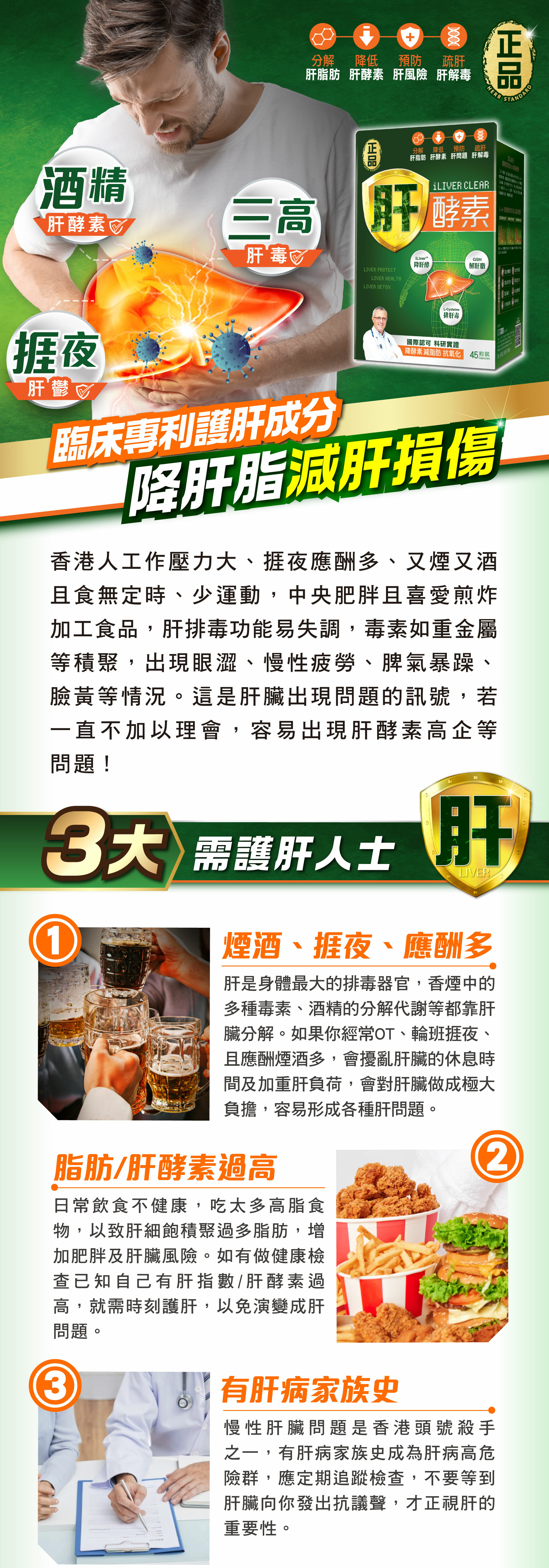肝酵素在新陳代謝、消化、修復組織等扮演重要角色,指數高企即肝細胞受到破壞,是受損的警號,會使細胞快速惡化,出現肝問題!健康的肝臟會自行修補受損的肝細胞,但若曾受損會降低肝功能。因此維持健康肝臟是忙碌都市人的首要選擇。